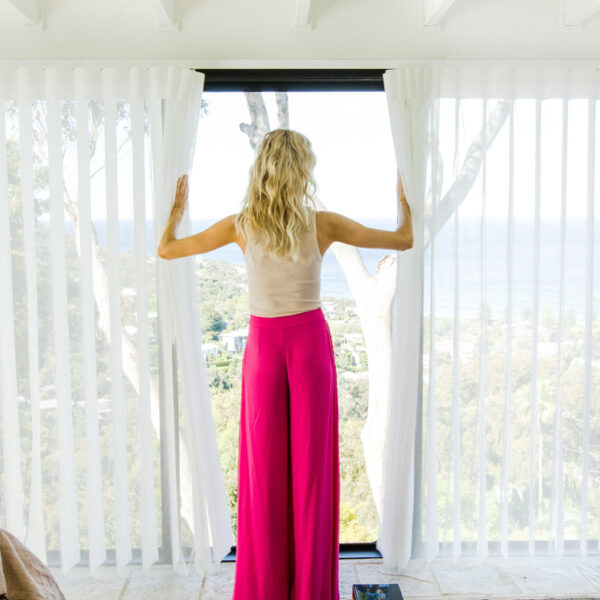 The soft fabric hangs beautifully. There are no weights or chains so you can walk through them anywhere, whether they’re opened or closed – they just sway out of the way and settle back perfectly. This makes them perfect for creating a soft feature across a large opening. Veri Ready can span up to 3 metres.